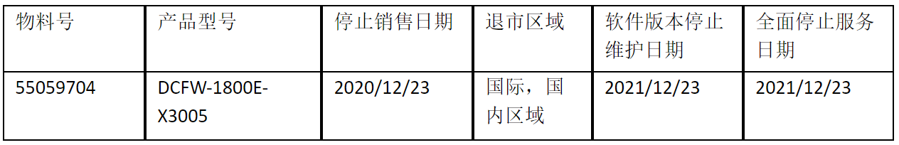 北京神州數(shù)碼leyu.樂魚信息技術(shù)有限公司正式通知您, 以上DCFW-1800E-X3005下一代防火墻(55059704)將于2020年12月23號(hào)停止接收新的訂單(具體日期見上表),不再供貨。給您帶來的不便,敬請(qǐng)?jiān)彙?/font>